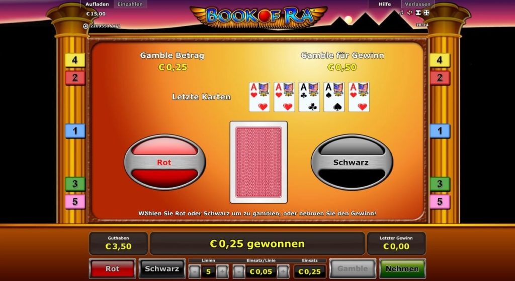 Die Gewinnchance liegt hier bei fairen 50 zu 50, denn vor dem Aufdecken jeder Karte musst du entscheiden, ob diese rot oder schwarz sein wird. Zwar winkt dir im Siegesfall der ganz große Gewinn – liegst du jedoch nur ein einziges Mal daneben, ist dein erspielter Ertrag verloren.