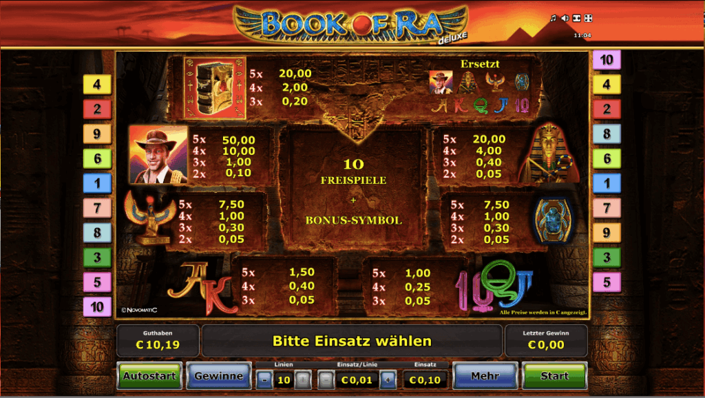 Er zählt zu den spannendsten und unterhaltsamsten Online Spielautomaten: Book of Ra. Das Novoline Spiel führt dich auf die Spuren einer längst vergessenen Welt und glänzt mit einer abenteuerlichen Aufmachung. Bei diesem Slot begibst dich auf die Suche nach dem legendären „Book of Ra“.