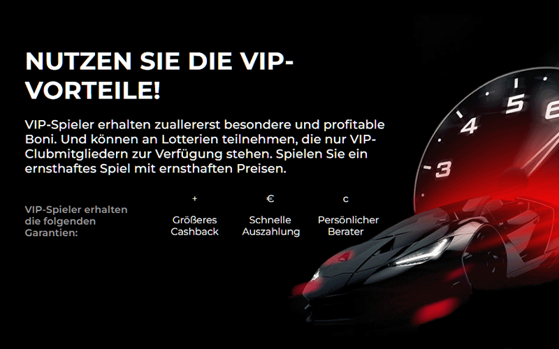 - Bonus für Bestandskunden: VIP-Programm, Wöchentliche Aktionen, Reload-Bonus, Einzahlungsbonus